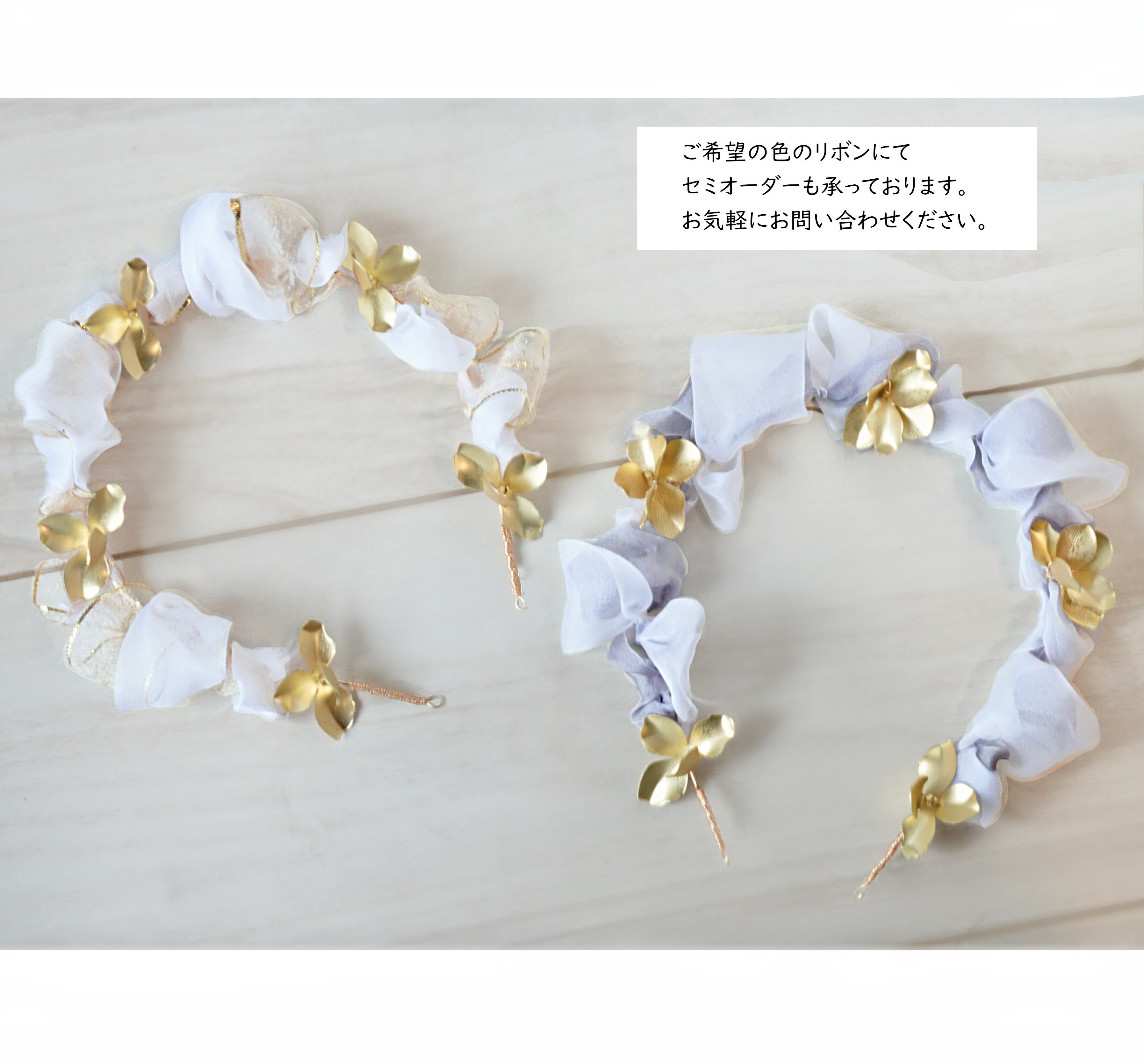 シルクリボンとゴールドの花の